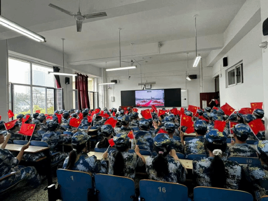 随后,全校师生观看阅兵仪式。受阅部队军容严整、意气风发,铁甲战车整齐列阵、威风凛凛,全校师生热血沸腾,强烈感受到国家日益繁荣昌盛、军队不断发展壮大,人民军队沿着党指引的方向,向着实现党在新时代的强军目标、向着实现中华民族伟大复兴阔步前进!师生纷纷挥动国旗和印有“铭记历史,缅怀先烈,珍爱和平,开创未来”“请党放心,强国有我”的手举牌,爱国热情持续高涨。