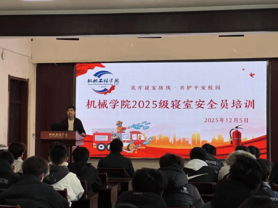 12月5日,机械工程学院召开寝室安全员培训大会。